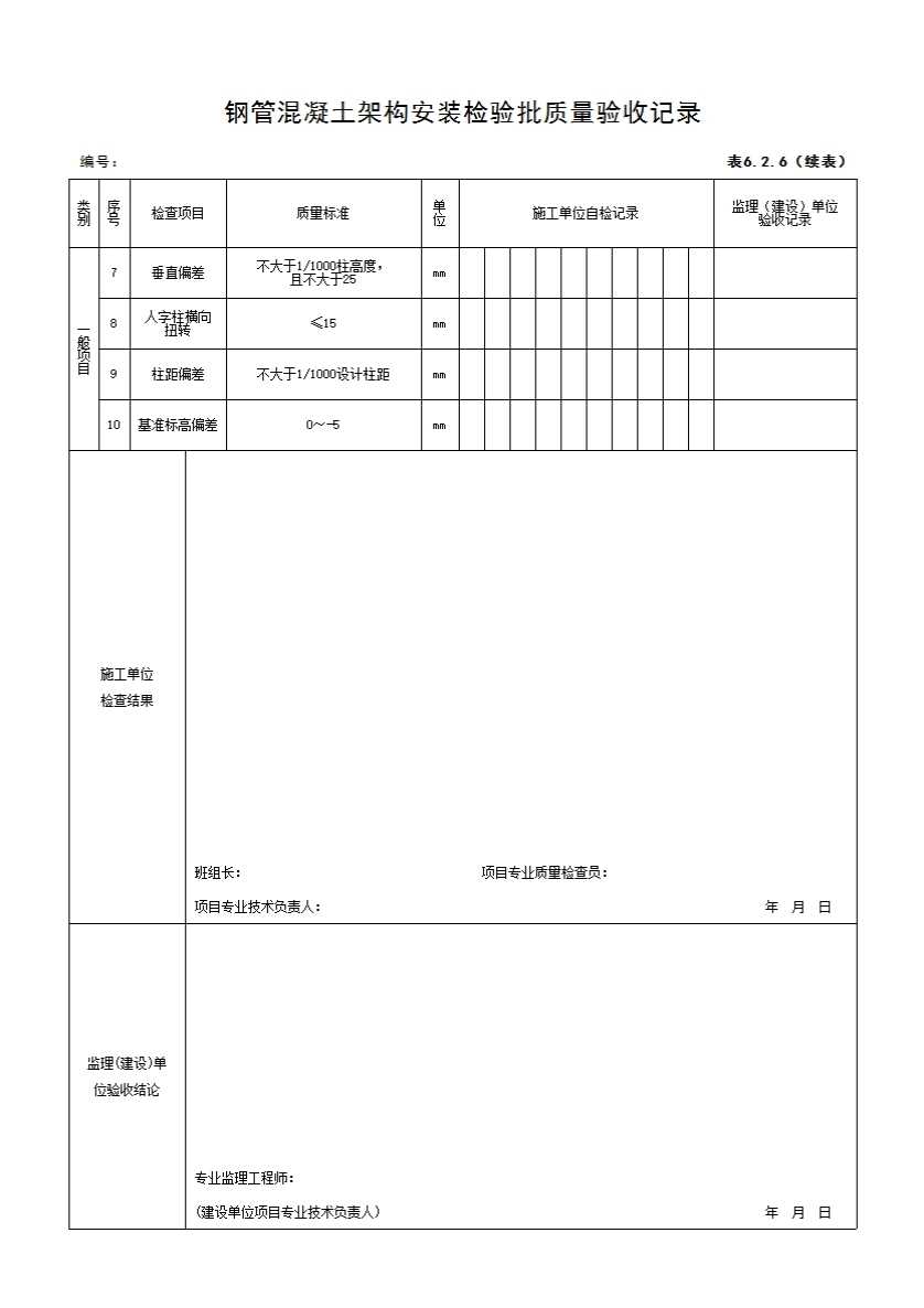 表格名称:6.2.6 钢管混凝土架构安装检验批质量验收记录