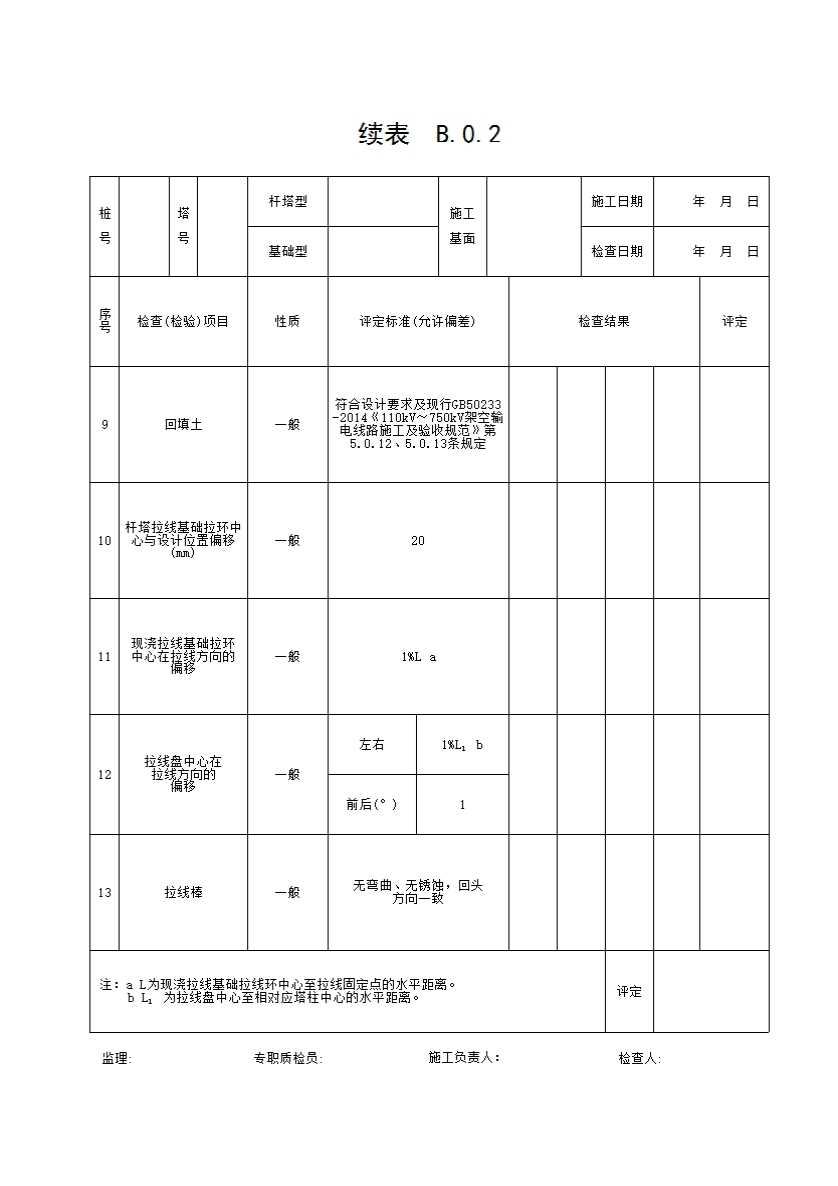 表格名称:表B.0.2 杆塔拉线(含锚杆拉线)基础检查及评定记录表