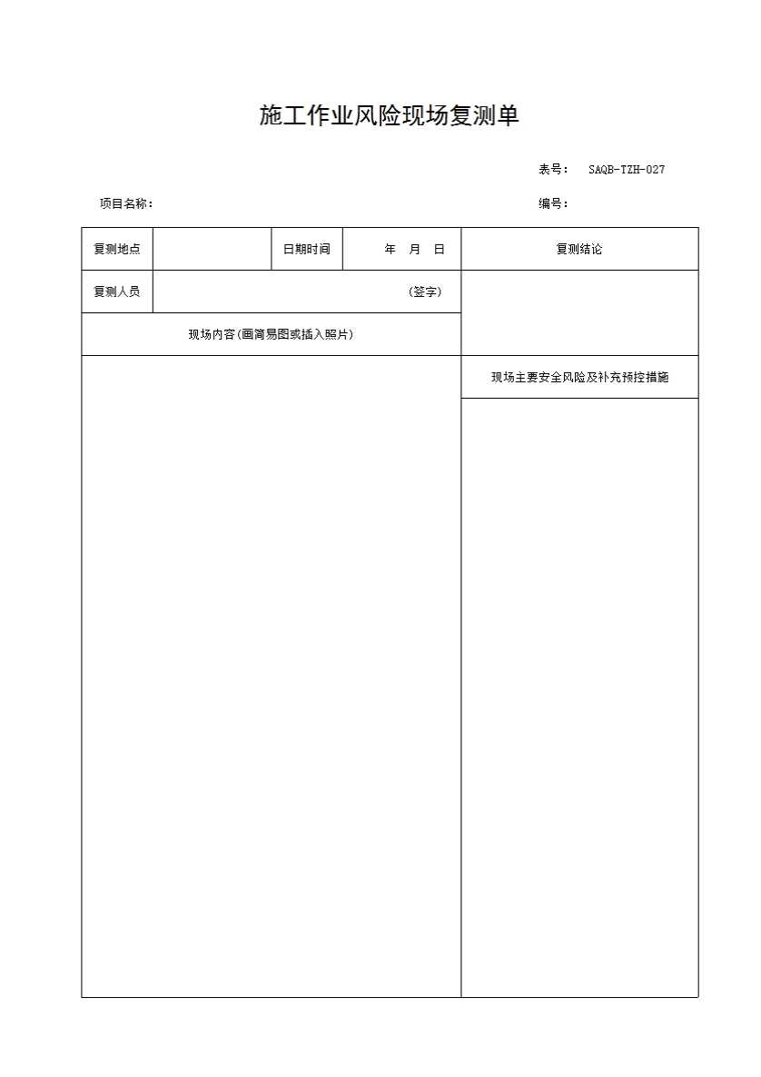 表格名称:施工作业风险现场复测单