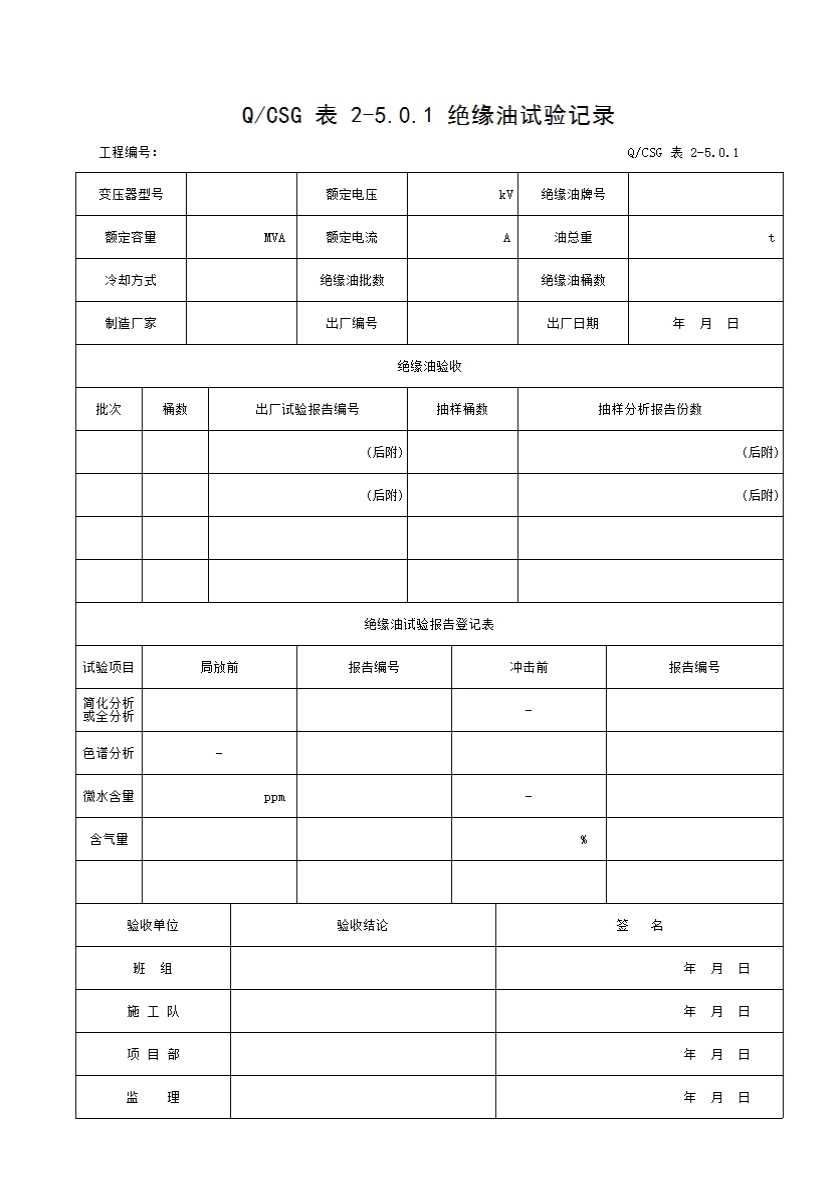QCSG 表 2-5.0.1 绝缘油试验记录