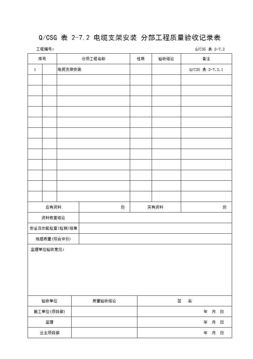 表格名称:QCSG 表 2-7.2 电缆支架安装 分部工程质量验收记录表