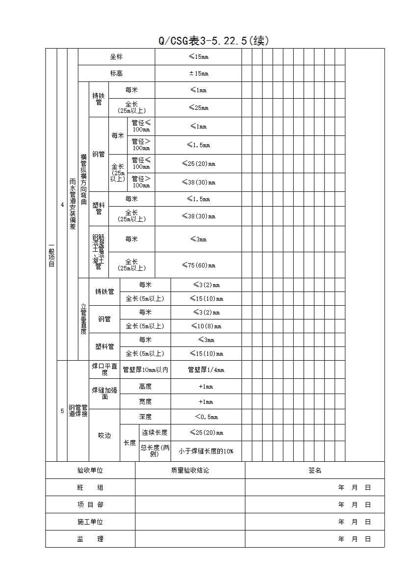 表格名称:QCSG 表 3-5.23.5 雨水管道及配件安装检验批质量验收记录表