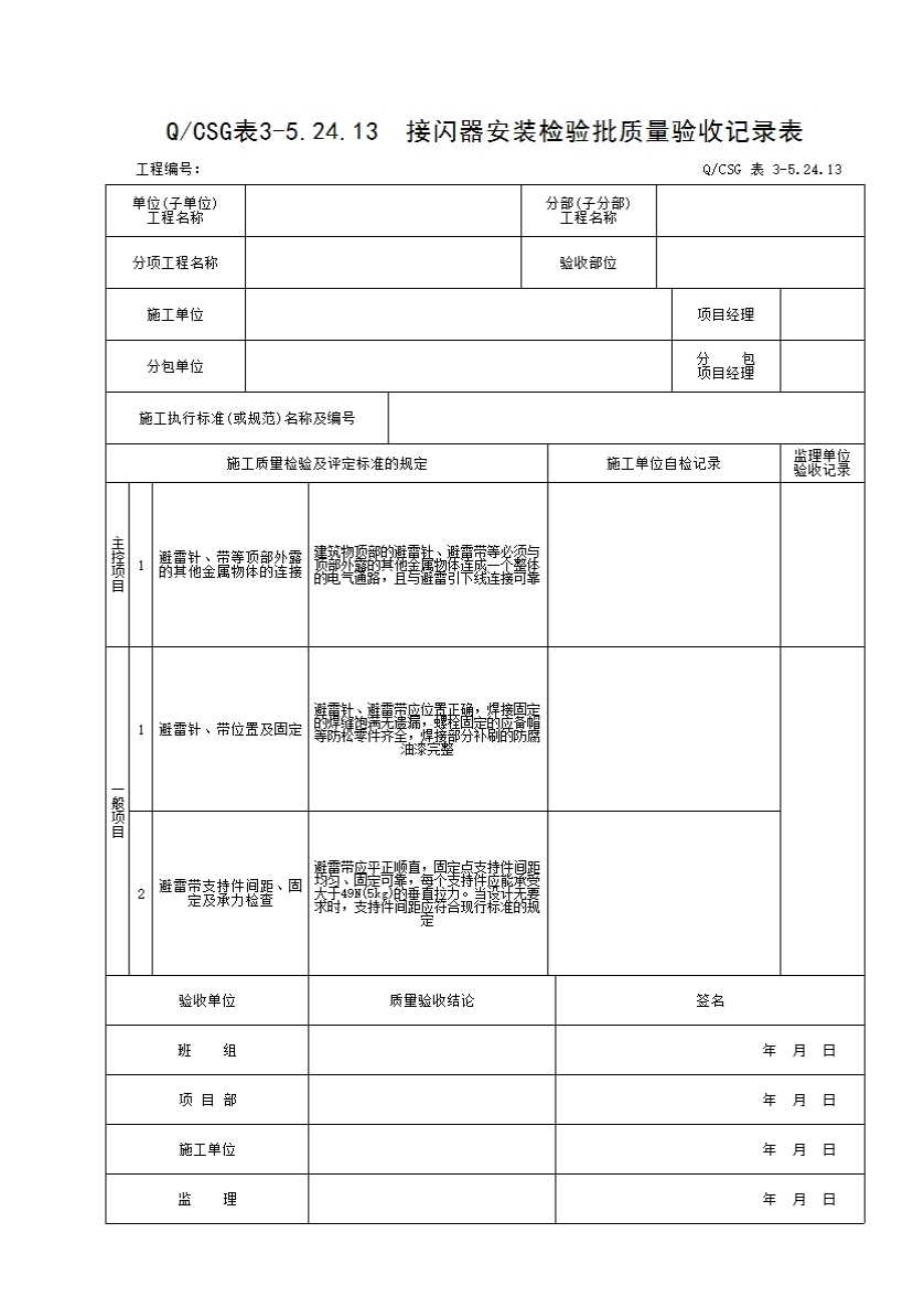 表格名称:QCSG 表 3-5.24.13 接闪器安装检验批质量验收记录表