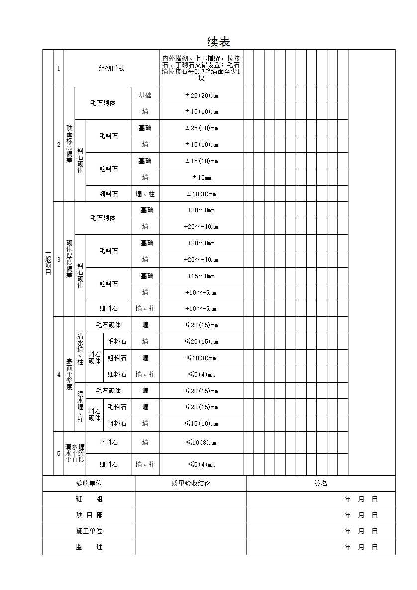 QCSG 表 3-8.3.5 石砌体工程验批质量验收记录表