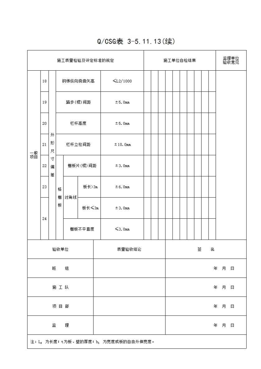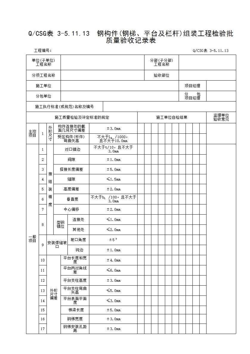表格名称:QCSG 表 3-5.11.13 钢构件(钢梯、平台及栏杆)组装工程检验批质量验收记录表
