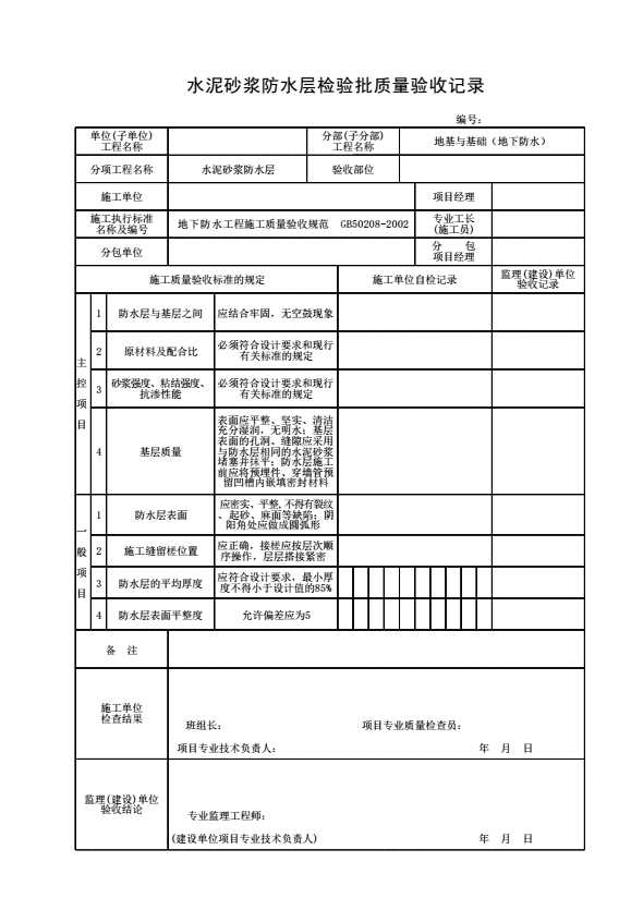 水泥砂浆防水层检验批质量验收记录