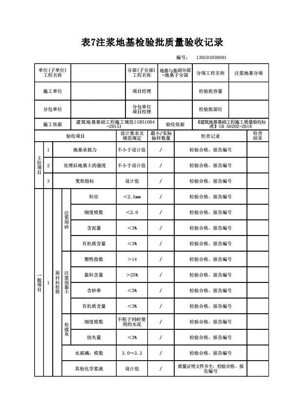表格名称:130101030601 注浆地基检验批质量验收记录
