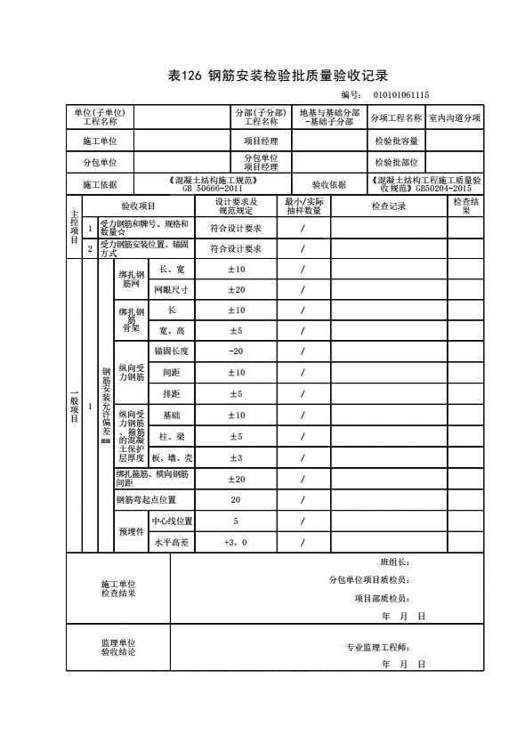 表格名称:130101061115 钢筋安装检验批质量验收记录