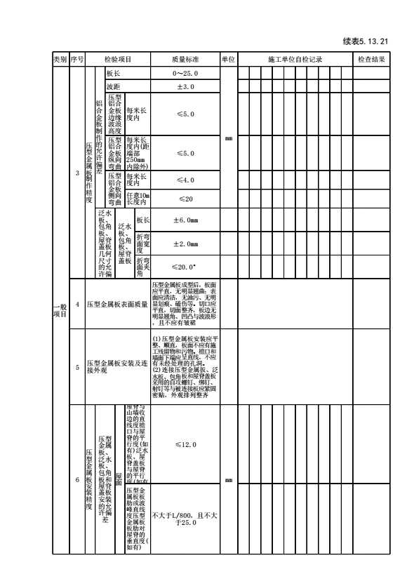表格名称:[符合表5.13.21]表7. 5.25压型板安装检验批质量验收记录