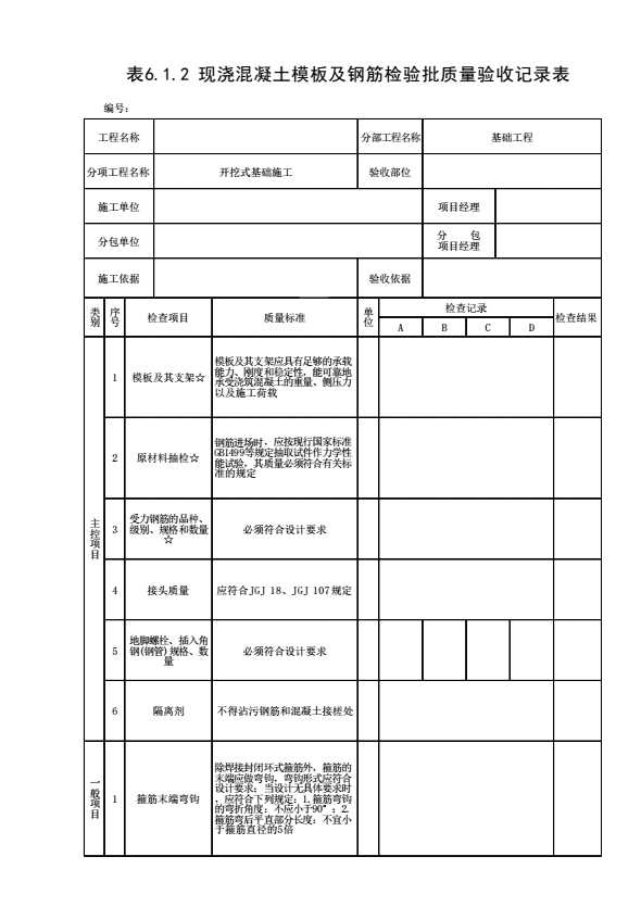 表格名称:表6.1.2 现浇混凝土模板及钢筋检验批质量验收记录表