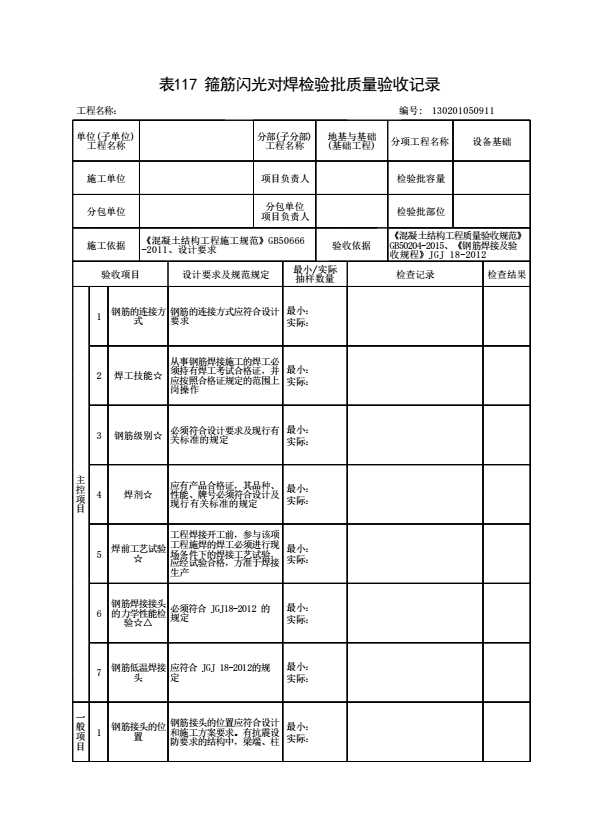 130201050911 箍筋闪光对焊检验批质量验收记录