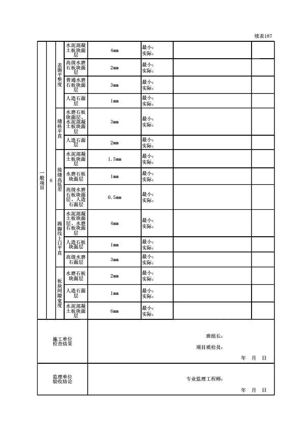 表格名称:140103010303 预制板块面层工程检验批质量验收记录