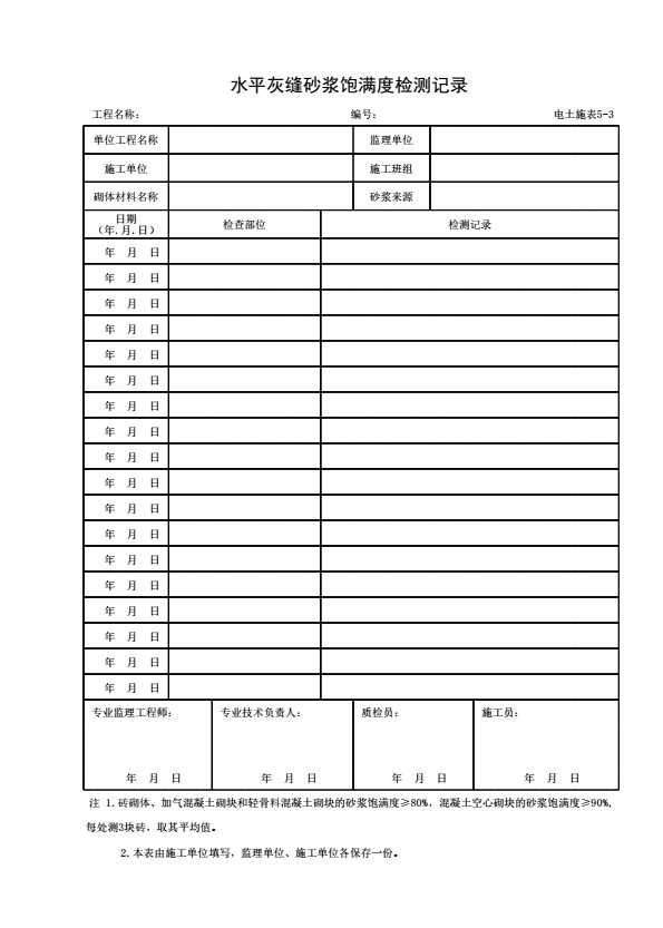 表格名称:电土施表5-3 水平灰缝砂浆饱满度检测记录