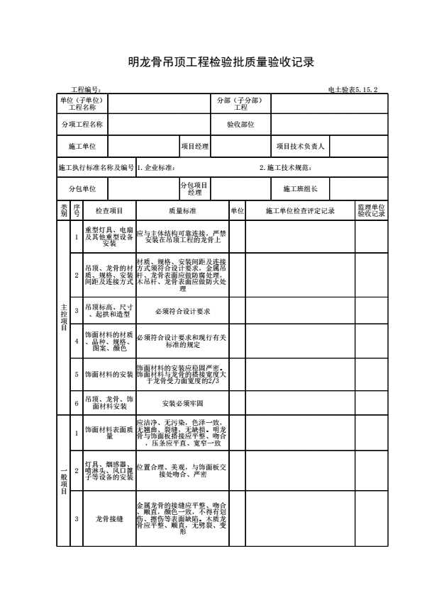 表格名称:电土验表5.15.2 明龙骨吊顶工程检验批质量验收记录