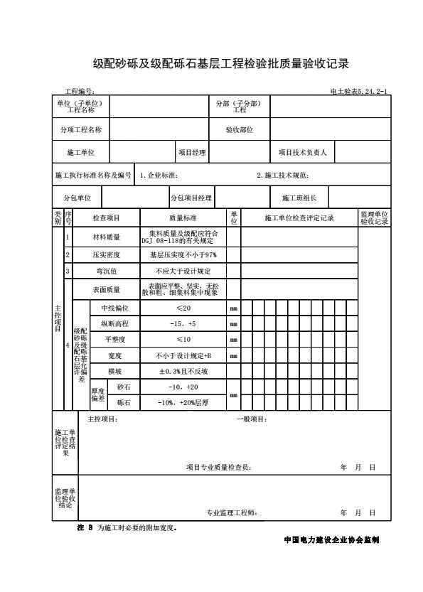 表格名称:电土验表5.24.2-1 级配砂砾及级配砾石基层工程检验批质量验收记录