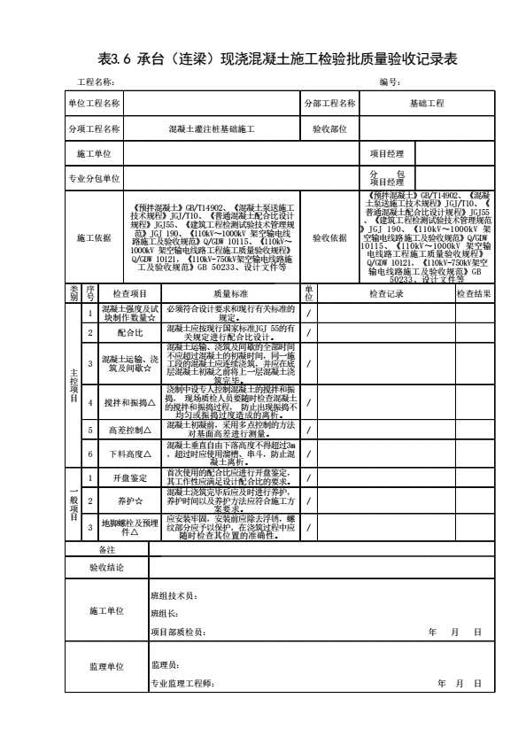 表格名称:表3.6 承台(连梁)现浇混凝土施工检验批质量验收记录表