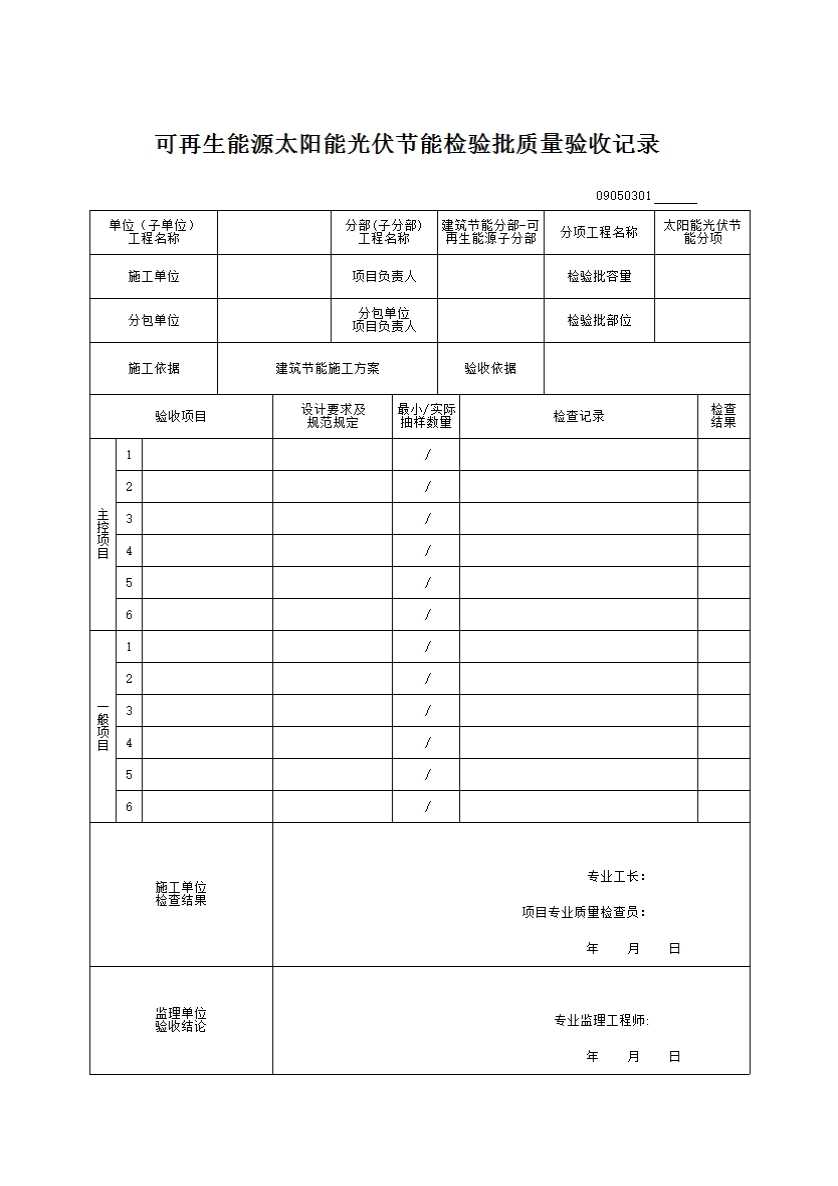 表格名称:09050301_可再生能源太阳能光伏节能检验批质量验收记录