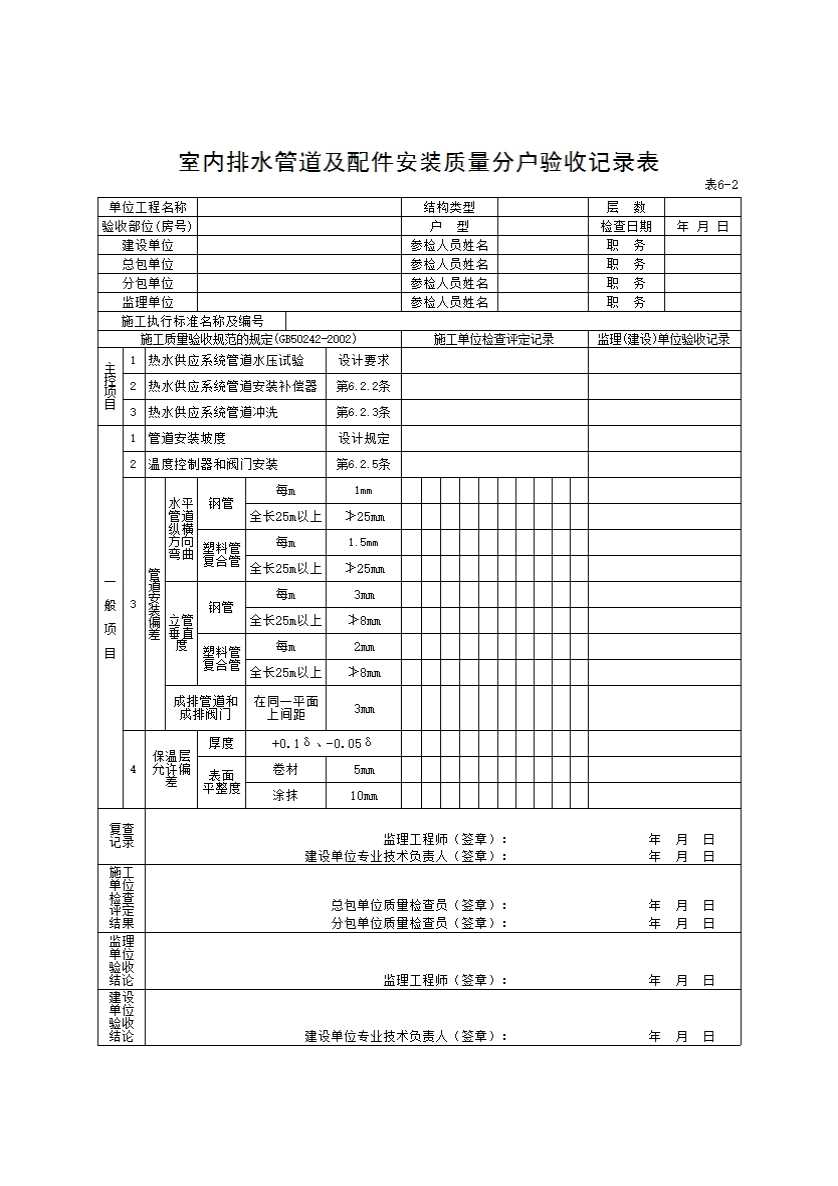 表格名称:6-4室内排水管道及配件安装质量分户验收记录表