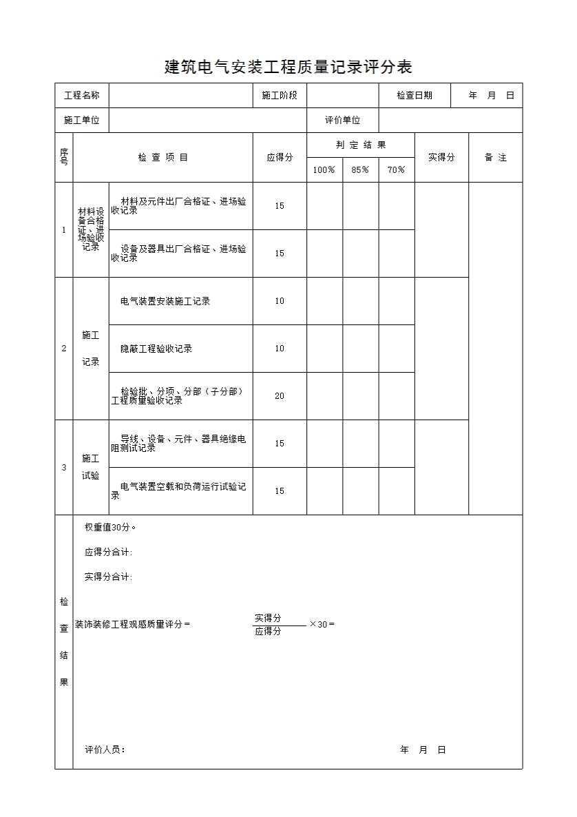 建筑电气安装工程质量记录评分表