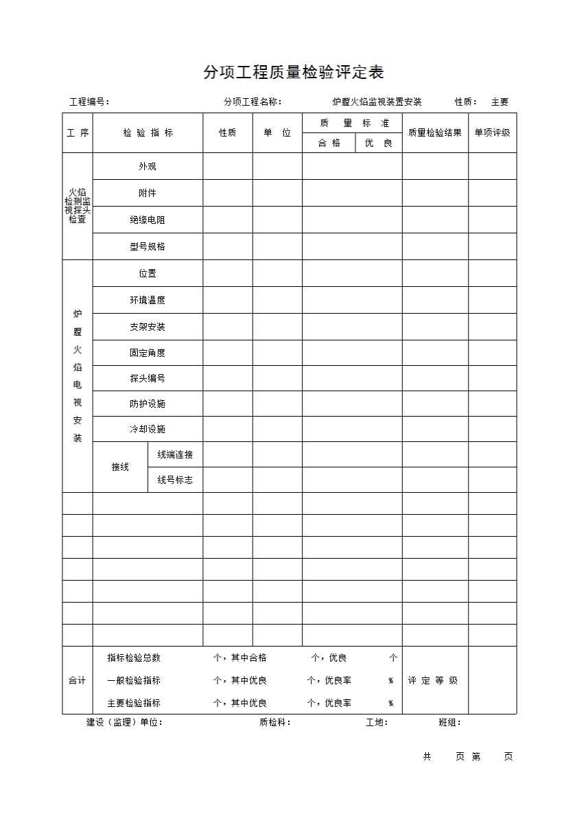 表格名称:炉膛火焰监视探头装置安装4-9-1、2