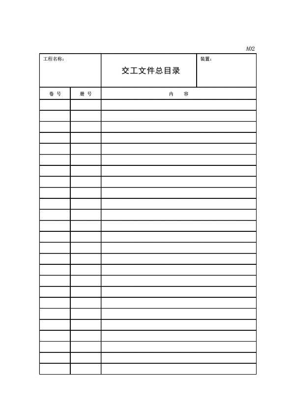 表格名称:A02 交工文件总目录