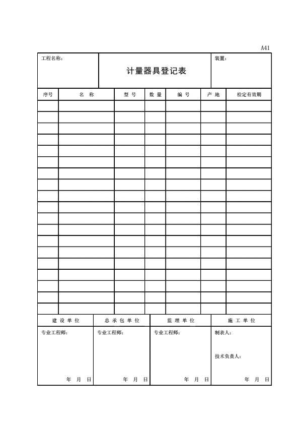 A41 计量器具登记表