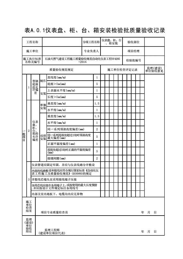 表格名称:仪表盘、柜、台、箱安装检验批质量验收记录