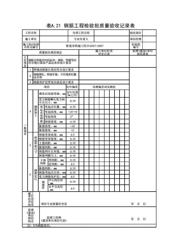 表格名称:表A.21 钢筋工程检验批质量验收记录表