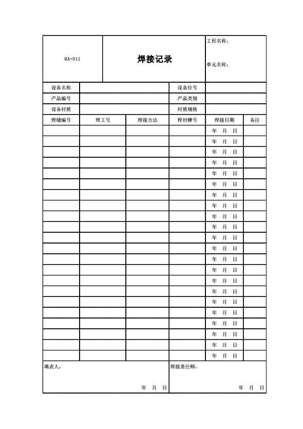 表格名称:HA-911 焊接记录