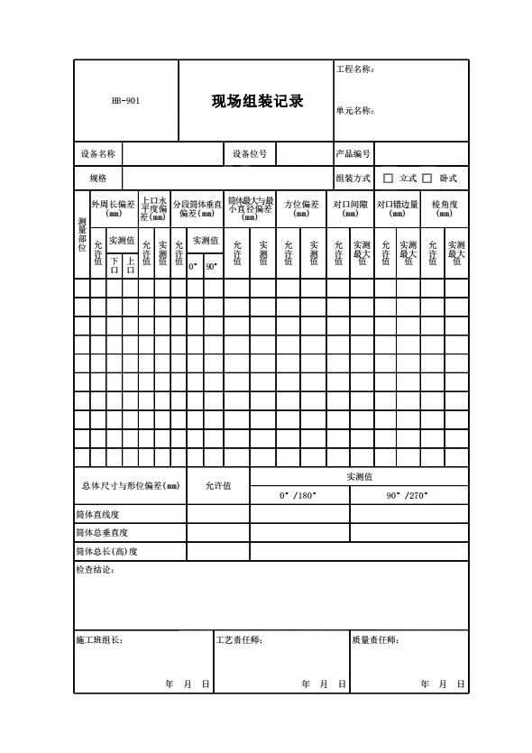 表格名称:HB-901 现场组装记录