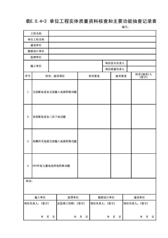 表格名称:13【电源设备】单位工程实体质量资料核查和主要功能抽查记录表