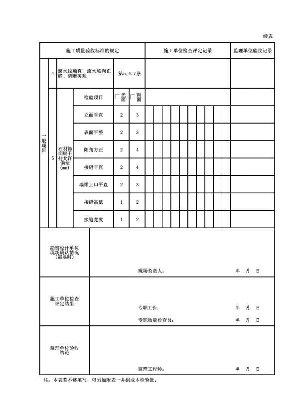 表格名称:石材饰面检验批质量验收记录