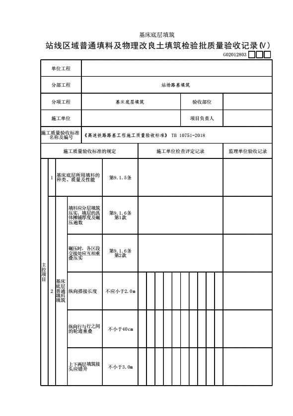 表格名称:G02012803 【基床底层填筑】站线区域普通填料及物理改良土填筑检验批质量验收记录(Ⅳ)