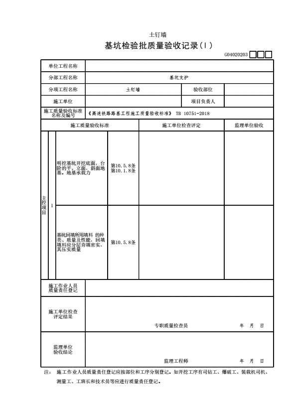 表格名称:G04020203 【土钉墙】基坑检验批质量验收记录(Ⅰ)