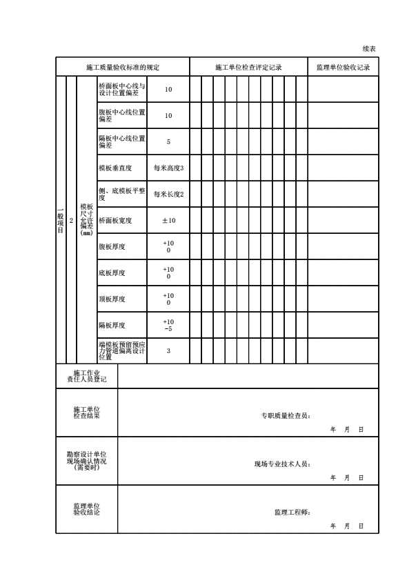 表格名称:G03011301 【模板及支架】模板及支架安装检验批质量验收记录(Ⅰ)