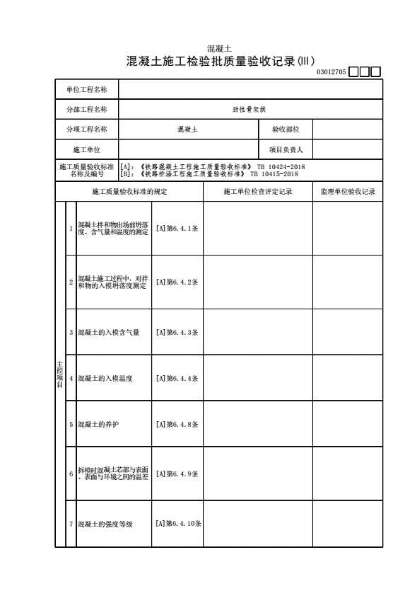 表格名称:03012705 混凝土施工检验批质量验收记录(Ⅲ)
