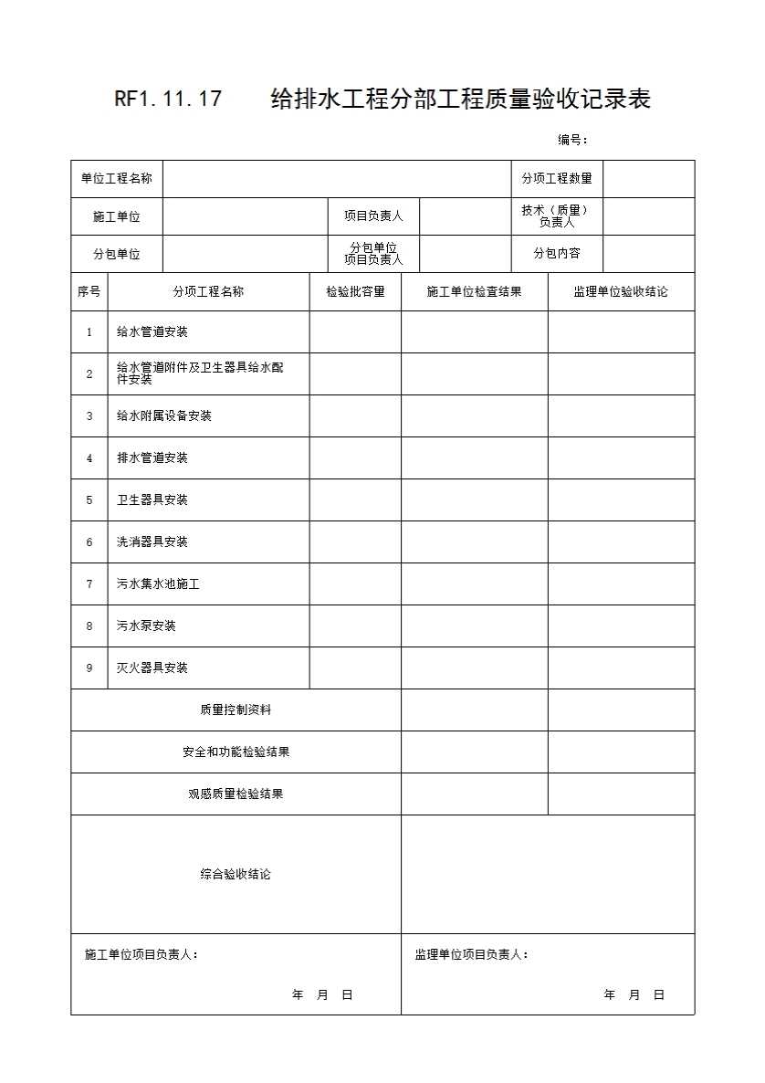 表格名称:1.11.17 给排水工程分部工程质量验收记录