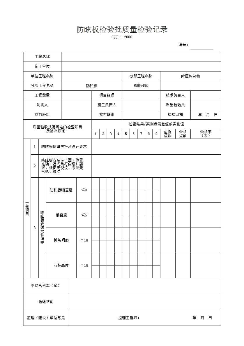 2 防眩板安装应牢固、位置准确,遮光角符合设计要求,板面无裂纹,涂层无气泡、缺损。