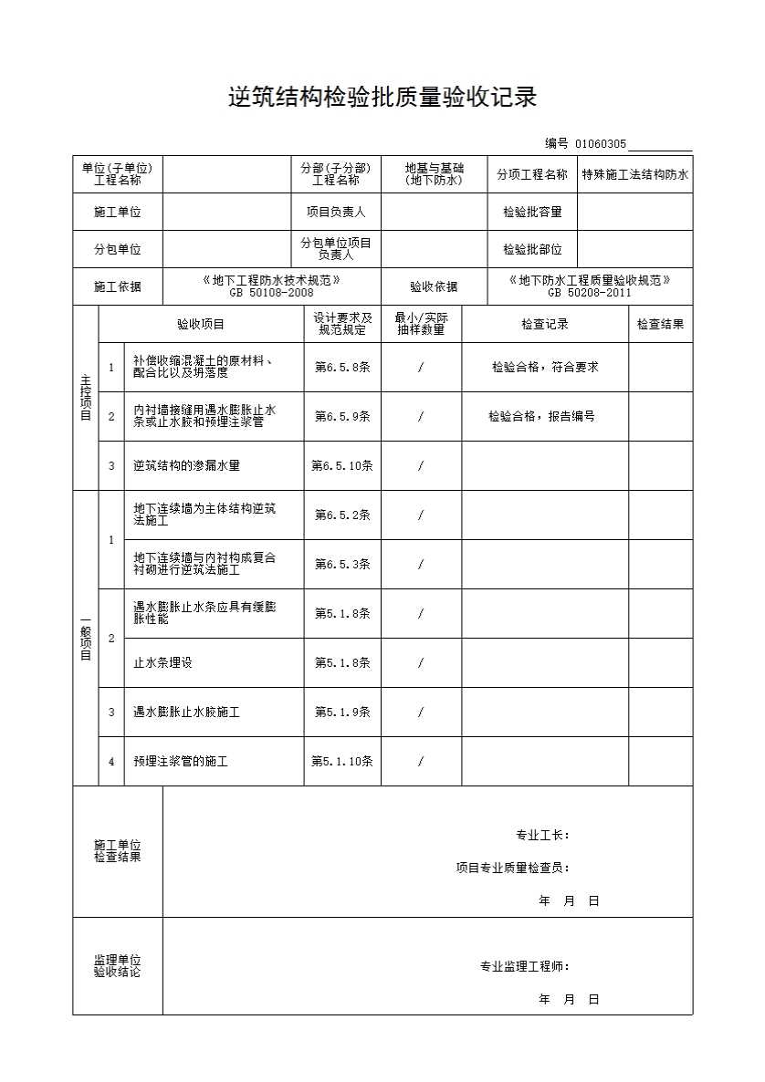 逆筑结构检验批质量验收记录