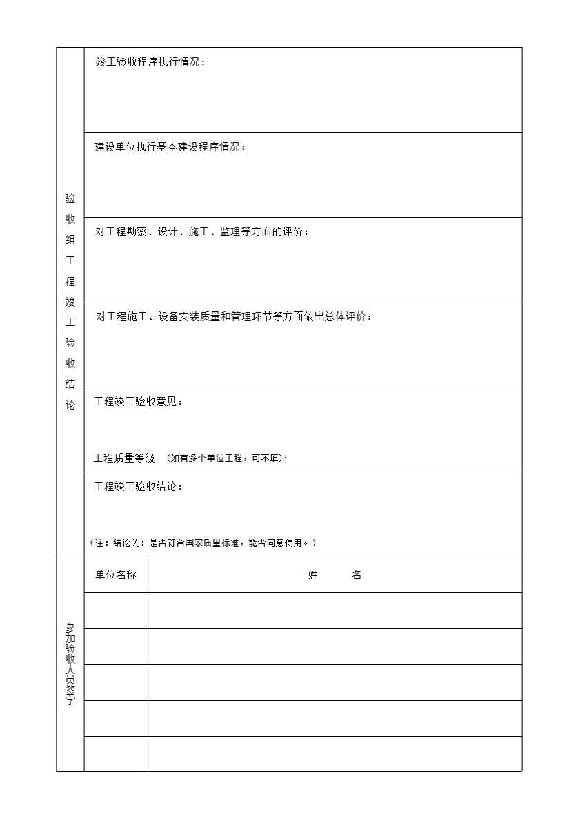表格名称:附表二十 市政工程竣工验收报告