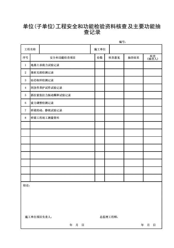 表格名称:单位(子单位)工程安全和功能检验资料核查及主要功能抽查记录