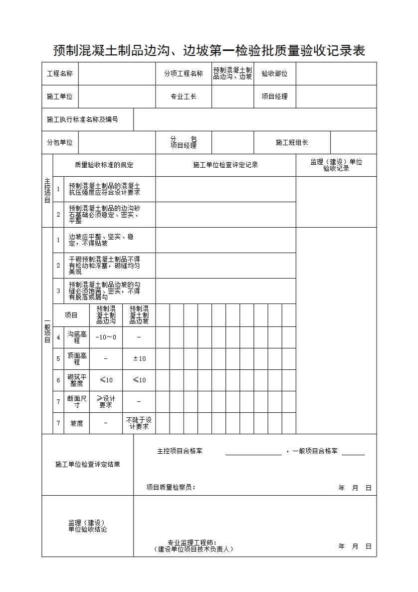 表格名称:预制混凝土制品边沟、边坡检验批质量验收记录表
