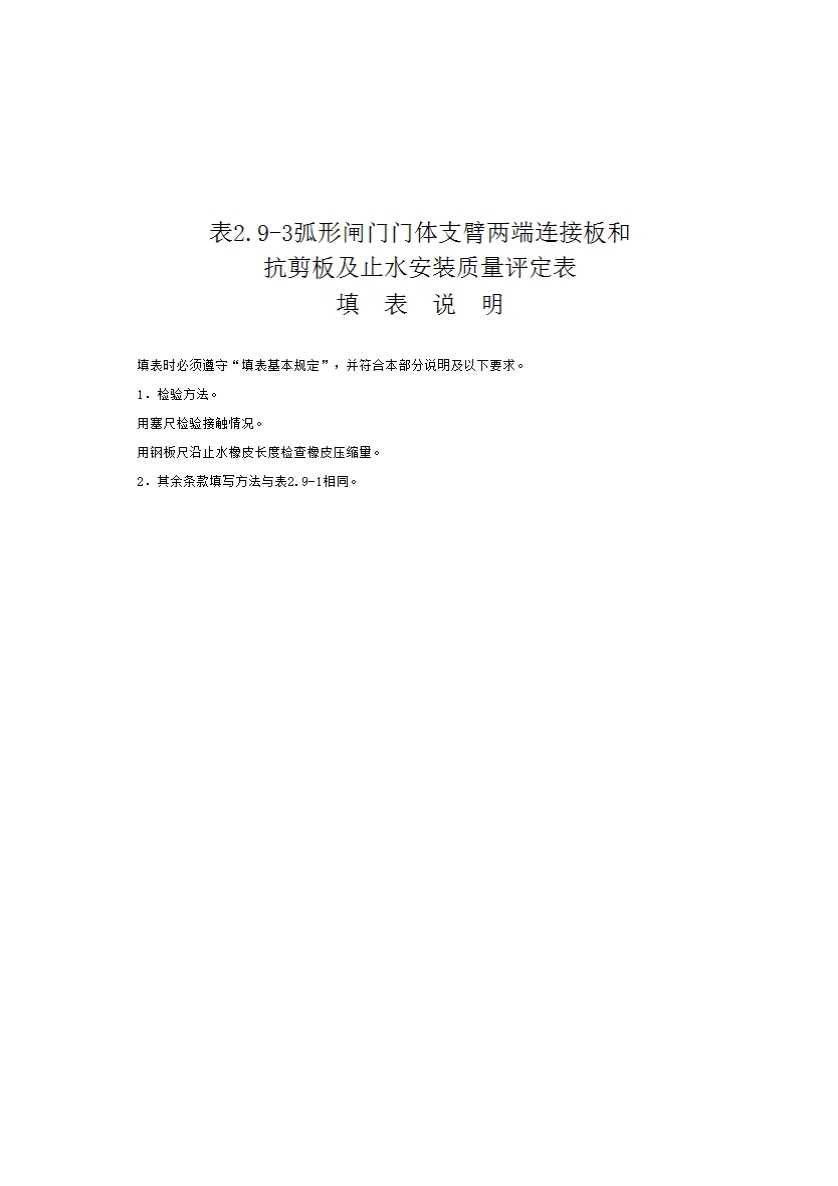 表2.10-1 人字闸门埋件底枢装置安装质量评定表