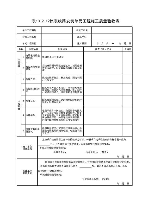 表格名称:表13.2.12 仪表线路安装单元工程施工质量验收表