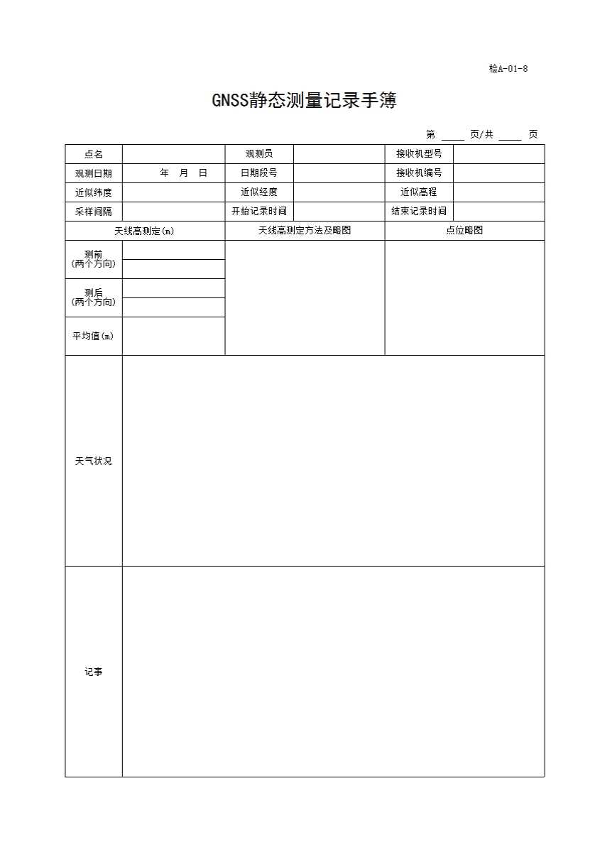 表格名称:1、(评A-01-8)GNSS静态测量记录手簿