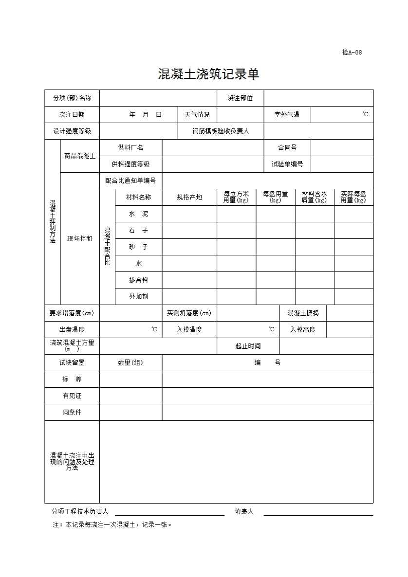 表格名称:8、(评A-08)混凝土浇筑记录单