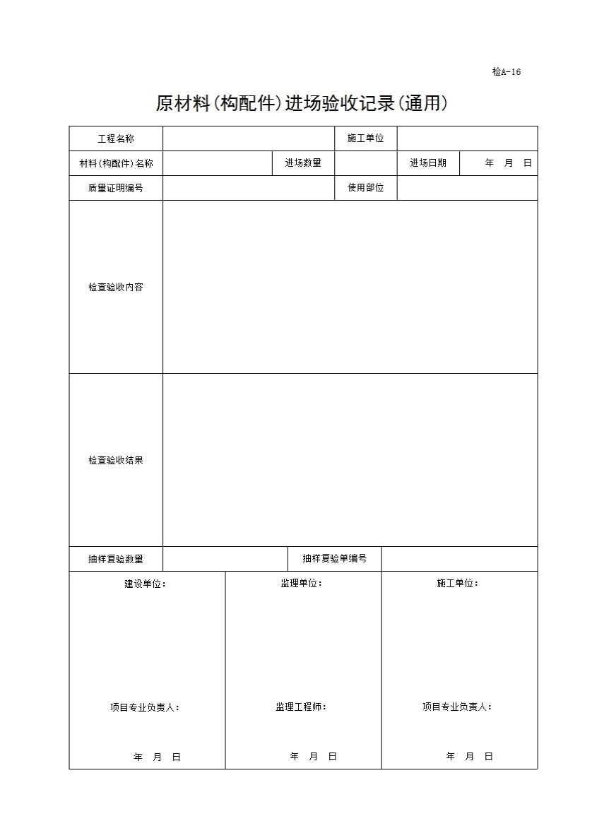 16、(评A-16)原材料(构配件)进场验收记录(通用)