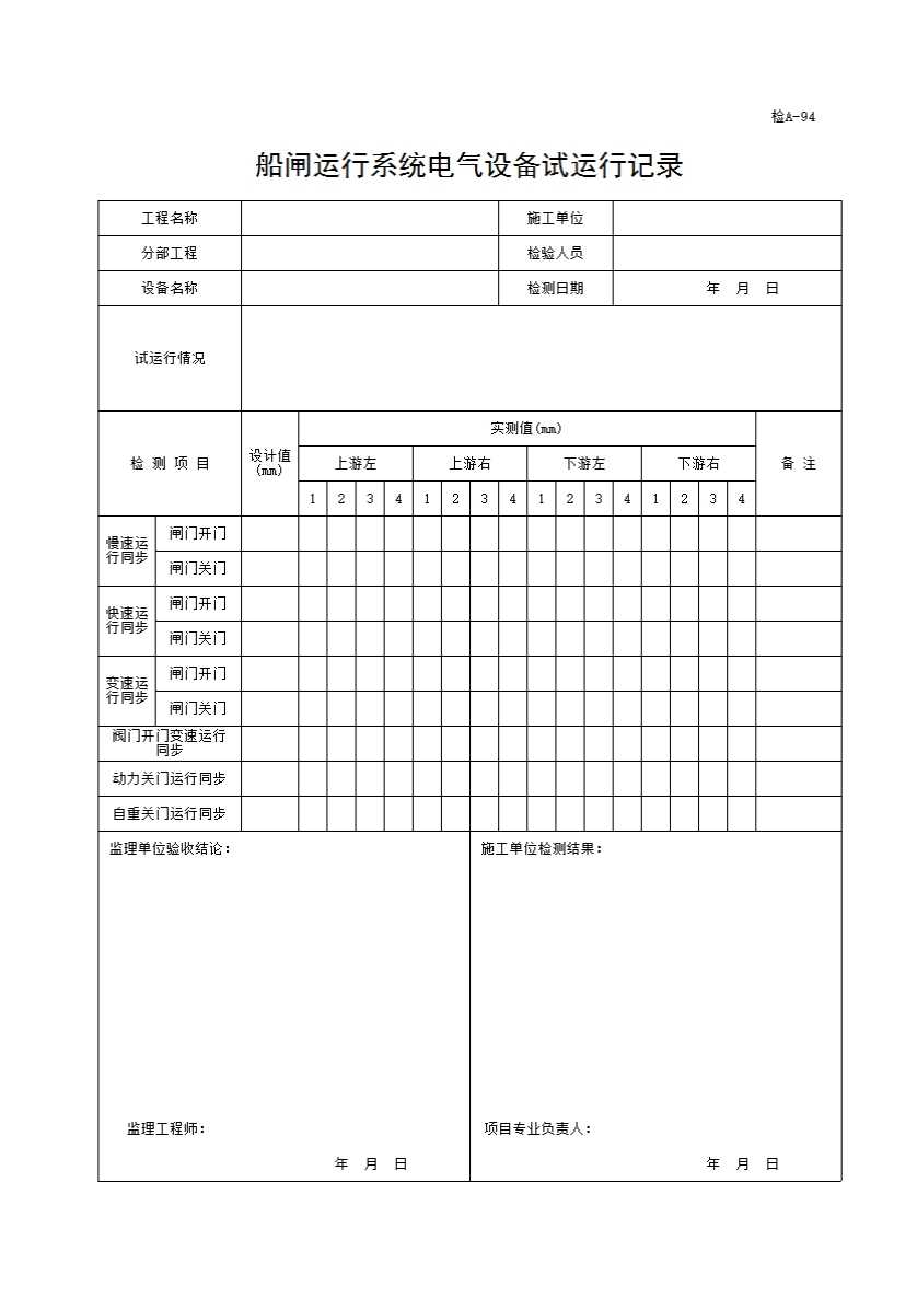94、(评A-94)船闸运行系统电气设备试运行记录
