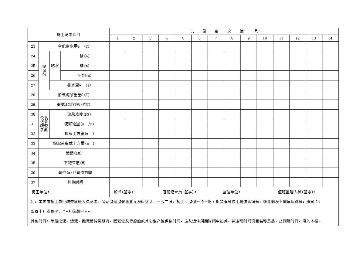 102、(评A-102)自航耙吸式挖泥船单船挖、运、抛泥运转周期时间及土方装载量施工记录表