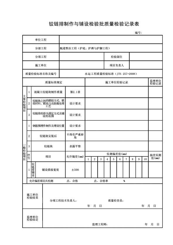 表格名称:铰链排制作与铺设检验批质量检验记录表